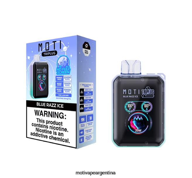 con un diseño épico de pantalla completa y hasta 20 000 caladas, el moti triplus ofrece una experiencia premium sin necesidad de recargas ni recargas. disfrute de un control de potencia triple para un vapeo personalizado, un flujo de aire ajustable para aspiraciones perfectas y una carga rápida tipo C.