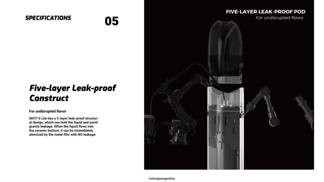• protegido con un diseño a prueba de fugas de cinco capas para garantizar la menor fuga posible de e-líquido.